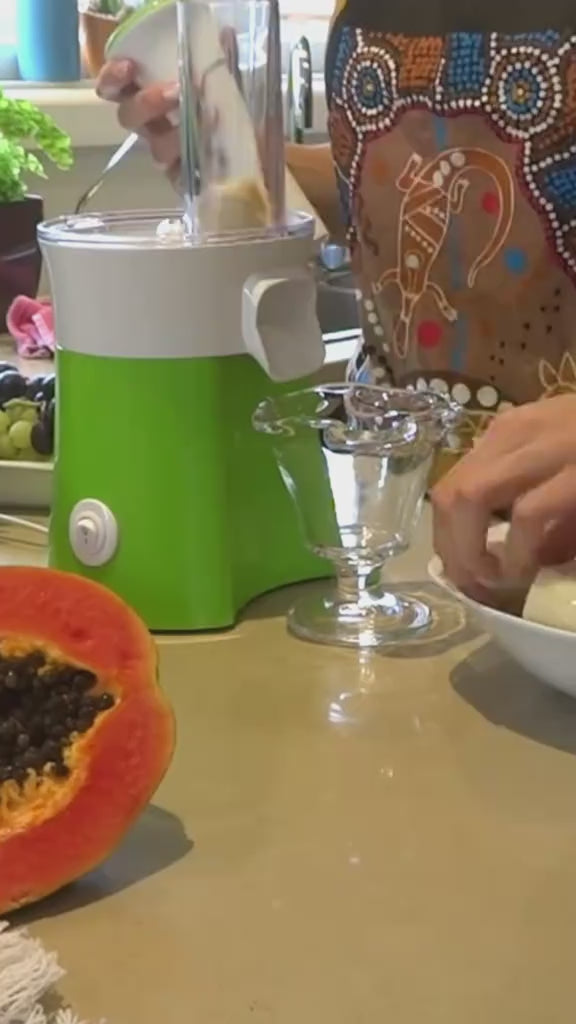 يحّول الفواكه لآيسكريم ناعم ولذيذ بدون سكر أو إضافات. مثالي للاستفادة من الفواكه المستوية أو اللي قربت تخرب. بديل صحي وممتع للآيسكريم الجاهز. سهل الاستخدام حتى الأطفال يقدرون يساعدون فيه. حجمه صغير ما ياخذ مكان فالمطبخ أو الكرفان. تنظيفه سهل كل القطع تنفك وتغسل بسهولة. آمن للغسيل في غسالة الصحون. يشتغل على كهرباء 220V يركب عادي بأي بيت. تقدر تسوي وصفات جاهزة أو تخترع خلطتك الخاصة. يجي معه ضمان سنتين يعني راحة بالك مضمونة.